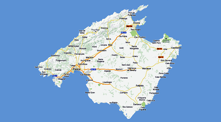 Fern Locations on the island of Mallorca - click any menu item to display dots - click again to remove